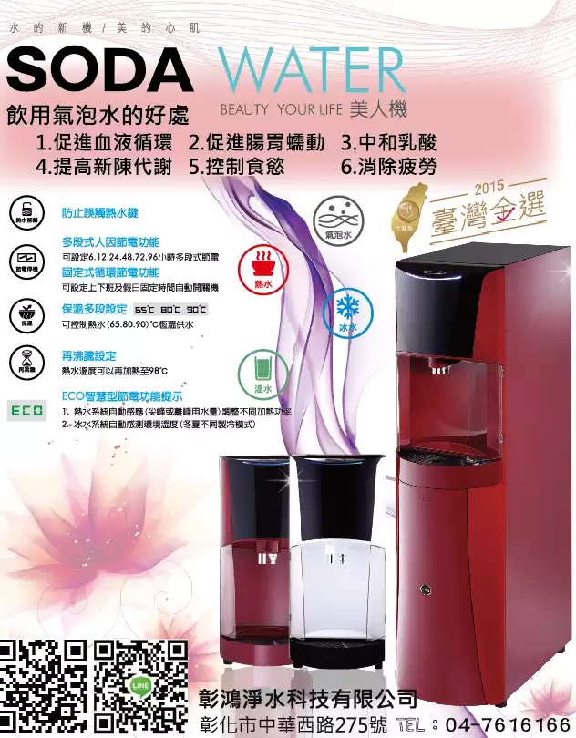 代理品牌 LCW龍泉牌精品 LC-7871系列 桌上型氣泡水飲水機,獲選第二屆2015MIT台灣金選產品。