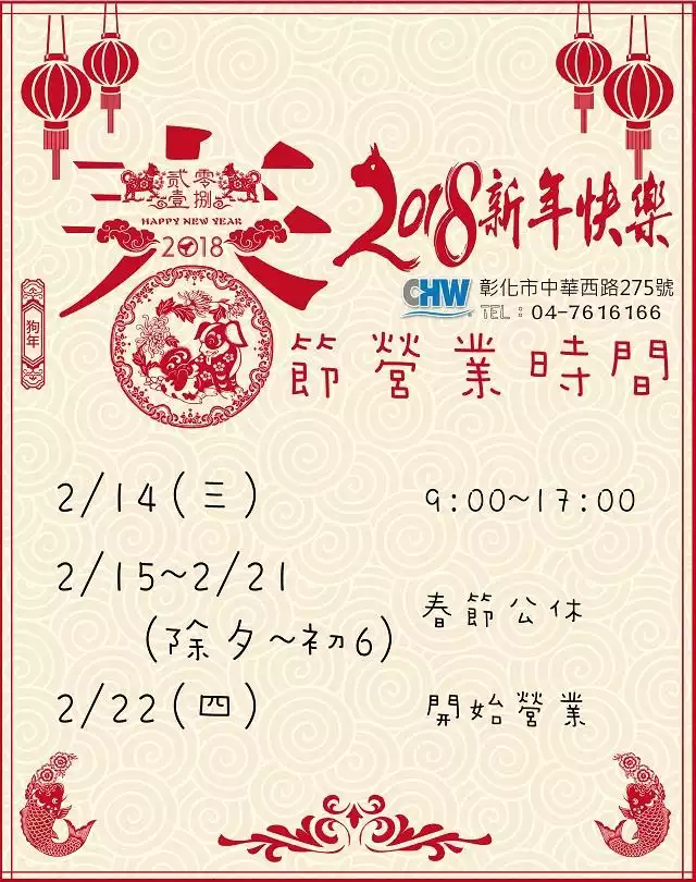 春節期間造成大家不便請多多包涵~彰鴻淨水祝大家新春愉快~發大財!