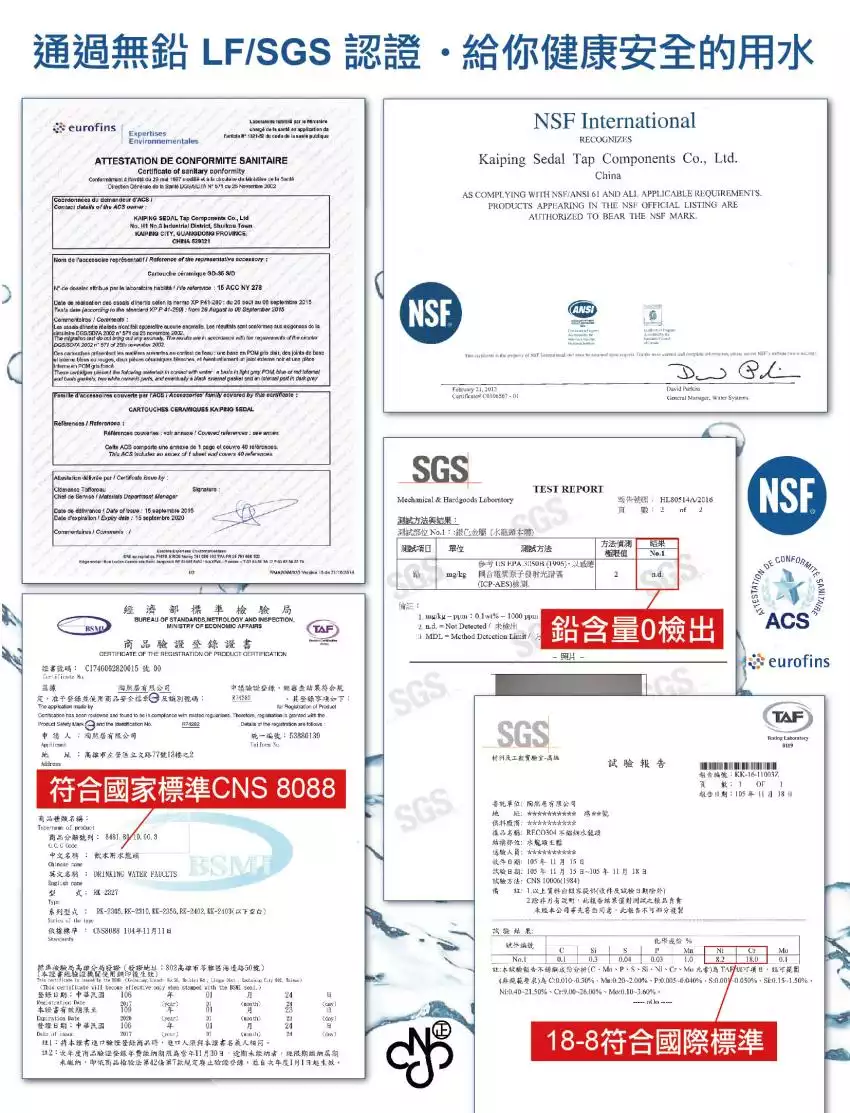 不鏽鋼水龍頭的鍛造與打磨技術不只非常困難,製造設備門檻也相當高;我們堅持每一個零件至表面都是全SUS304不鏽鋼製才能提供無毒、無害、健康的水龍頭產品。