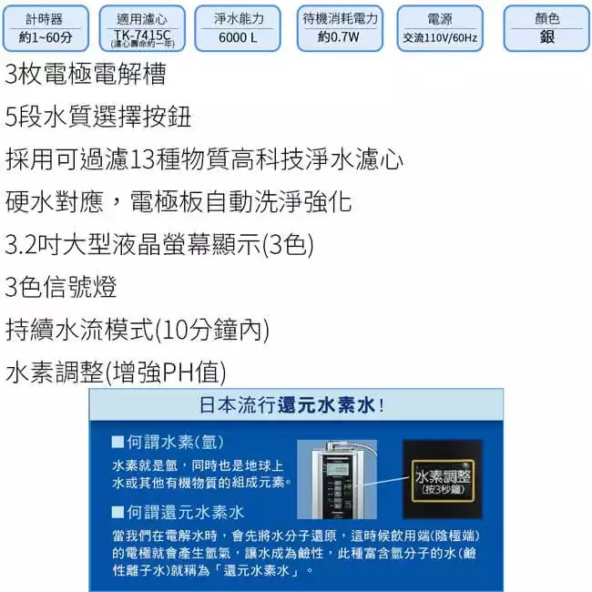 Panasonic 國際牌電解水機TK-HS50-ZTA