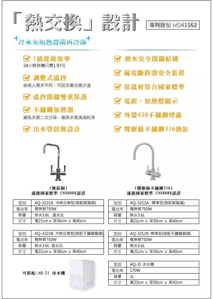 熱交換系統設計 搭配316不銹鋼雙溫龍頭