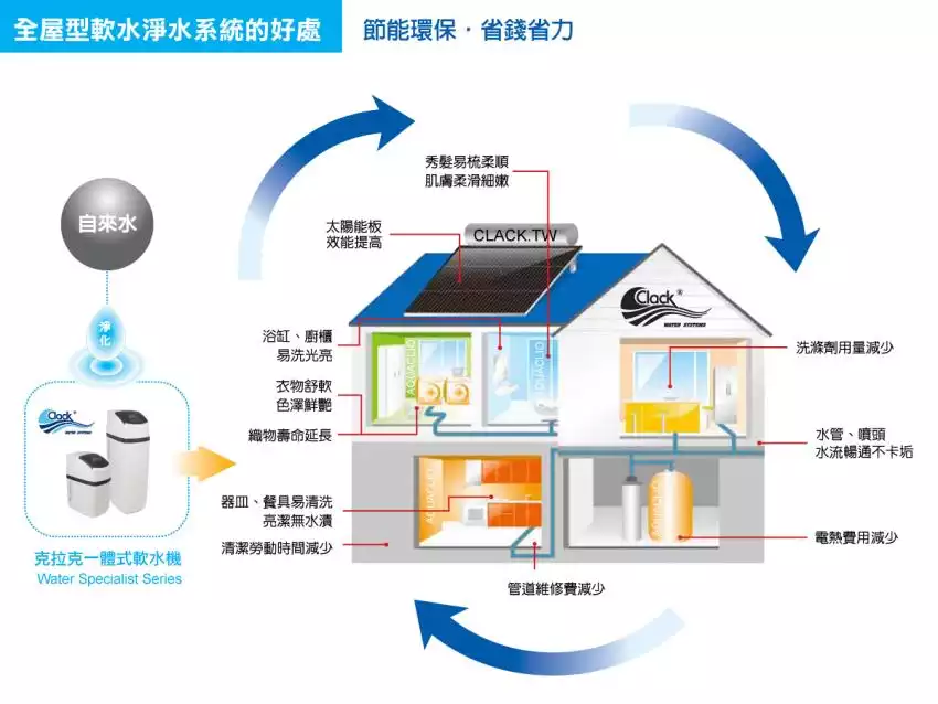 2.過濾效能較傳統提升20%,有效過濾水中的石灰質、水垢及鈣鎂離子,軟化生活用水從硬水變成軟水。