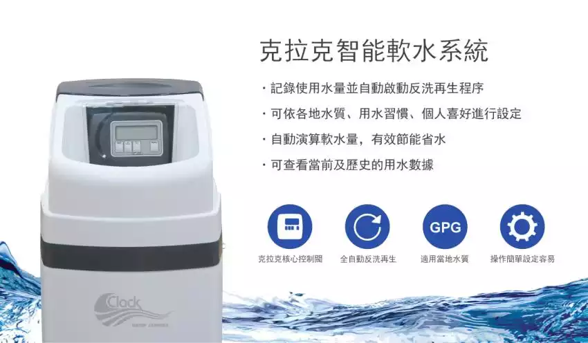 美國 克拉克-CLACK 全自動電子流量式單槽全屋式軟水系統-全新滑蓋設計