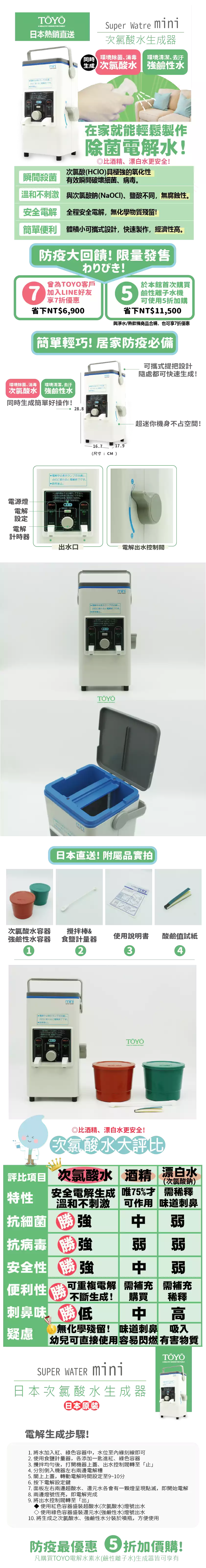 - 購買TOYO電解水素水(鹼性離子水)生成器皆可享有5折加價購!