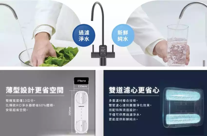 - 雙出水模式,提供純水或過濾水