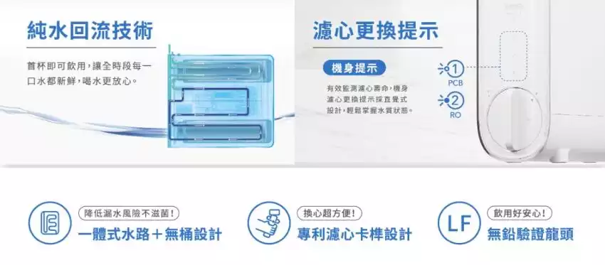 - 純水回流技術,全時段每一口都新鮮