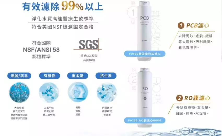第一道濾心(建議更換週期) | F0162 雙效複合式濾心 (6~12個月) |