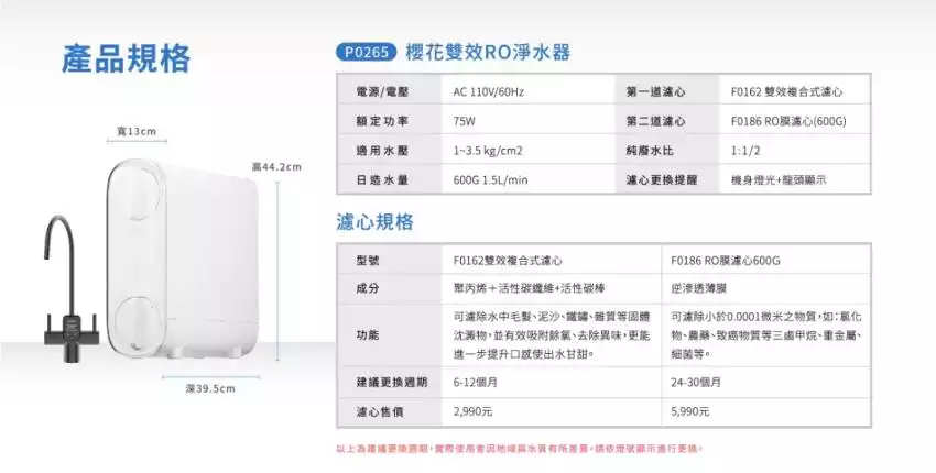 SAKURA櫻花 RO逆滲透vs淨水器 P0265/P-0265