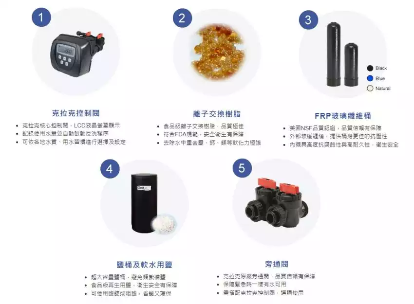 有效過濾水中的石灰質、水垢及鈣鎂離子,軟化生活用水從硬水變成軟水。
