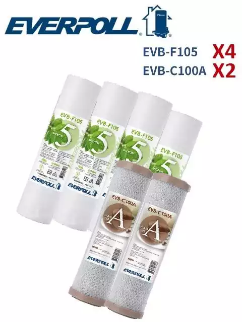 | 商品功能介紹 | 第一道濾心(EVB-F105)10吋5微米PP濾芯 PP五微米棉質濾心,濾除雜質、泥沙、鐵鏽,大於五微米之雜質固體。 第二道濾心(EVB-C100A)10吋CTO活性碳棒濾芯 ◉內容物材質採用美國卡爾岡活性碳製造之特殊活性碳孔洞結構 ◉能有效吸附各種化學物質包括氯及其他易造成水質異色異味的有機物質 ◉濾心活性碳通過NSF/ANSI 42認證 |
