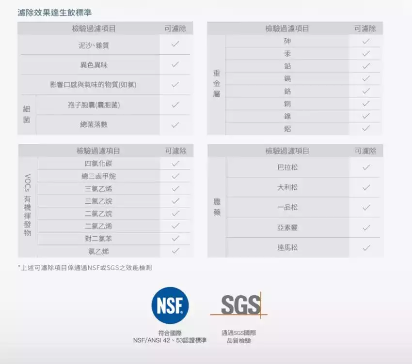 | 第二道濾材 (建議更換週期) | 活性碳纖維濾心 (6~12個月) |