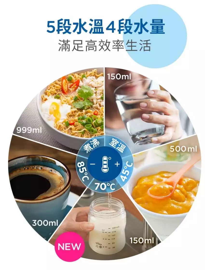 ★四段定量出水 : 150ml / 350ml / 500ml / 999ml
