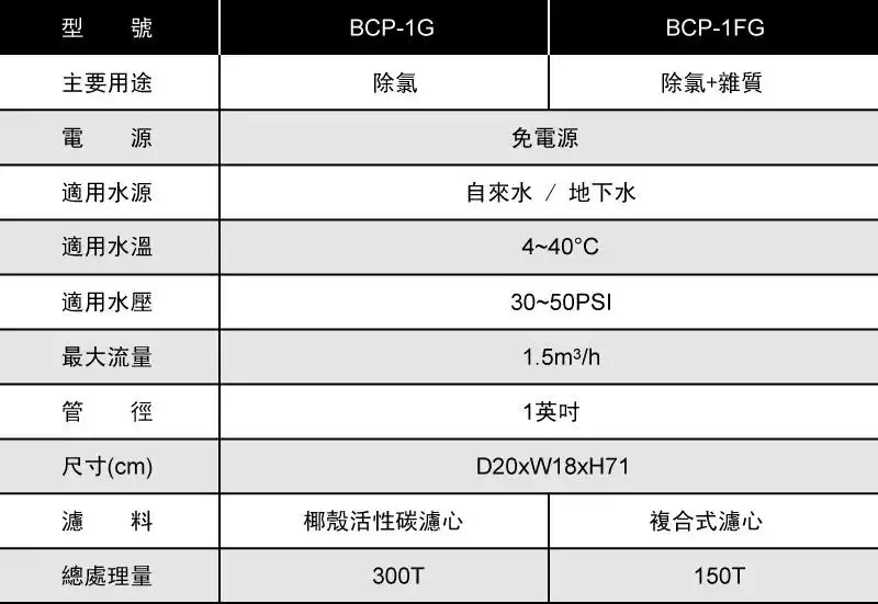 • BCP全戶除氯過濾器,有效過濾水中餘氯