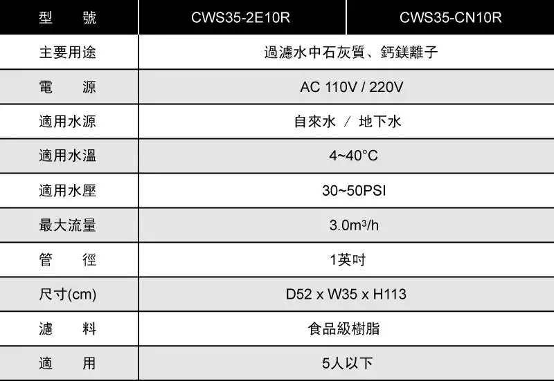 ● 有效過濾水中的石灰質、水垢及鈣鎂離子,軟化生活用水。